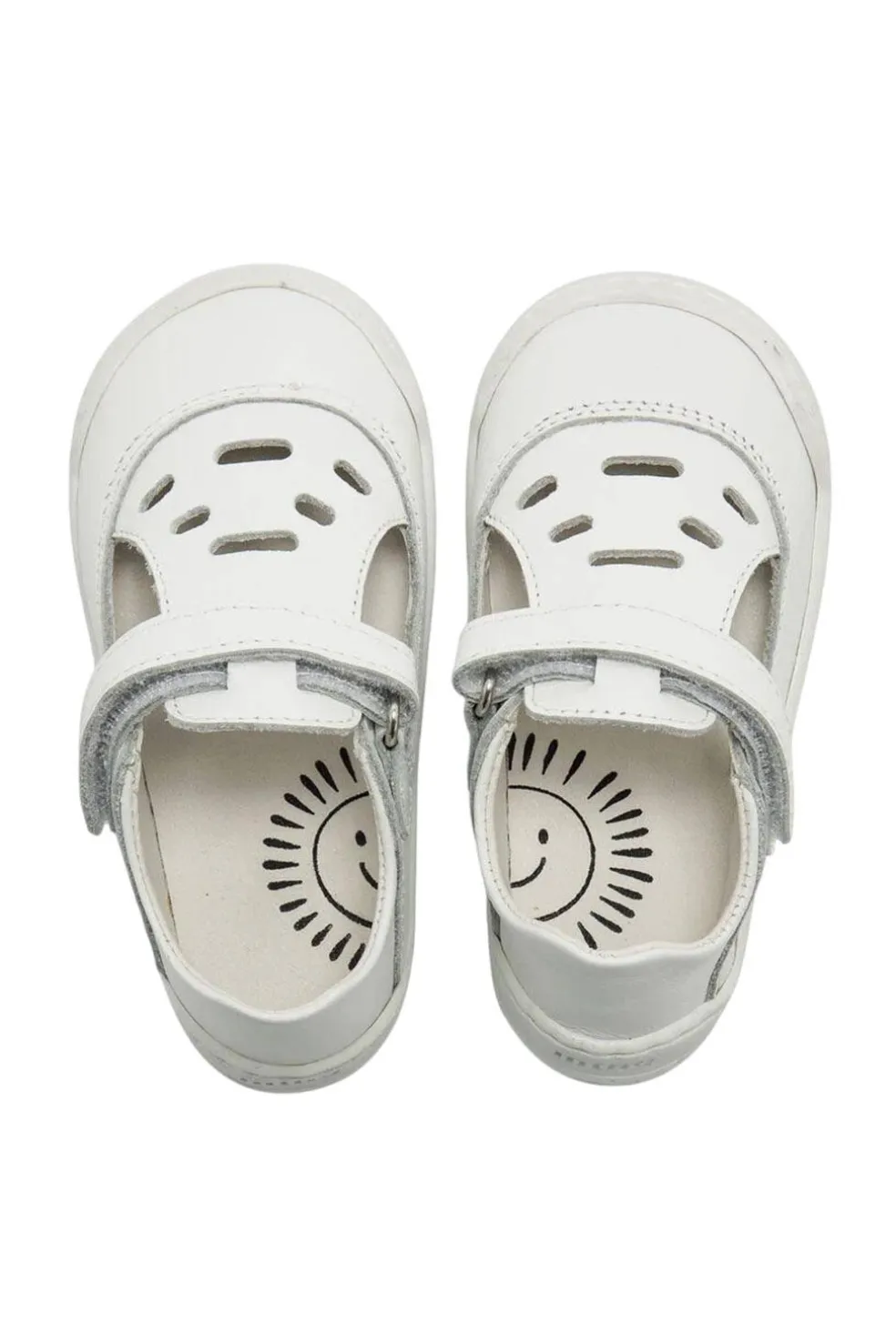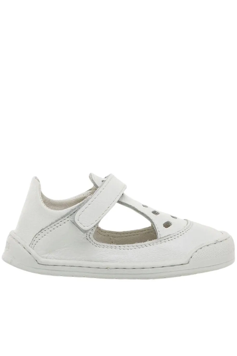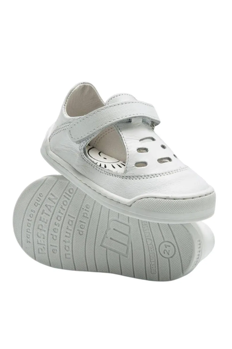 Calzado que respeta el desarrollo del pie del bebé. Sandalias de color blanco para bebé de la marca Mustang, modelo Free baby diseñado en piel con un estilo clásico tipo merceditas. Este modelo incluye un troquelado decorativo en la parte superior que aporta ventilación y un toque distintivo. Su práctico cierre adhesivo asegura un ajuste cómodo y facilita la colocación, mientras que la puntera redondeada ofrece espacio y comodidad.