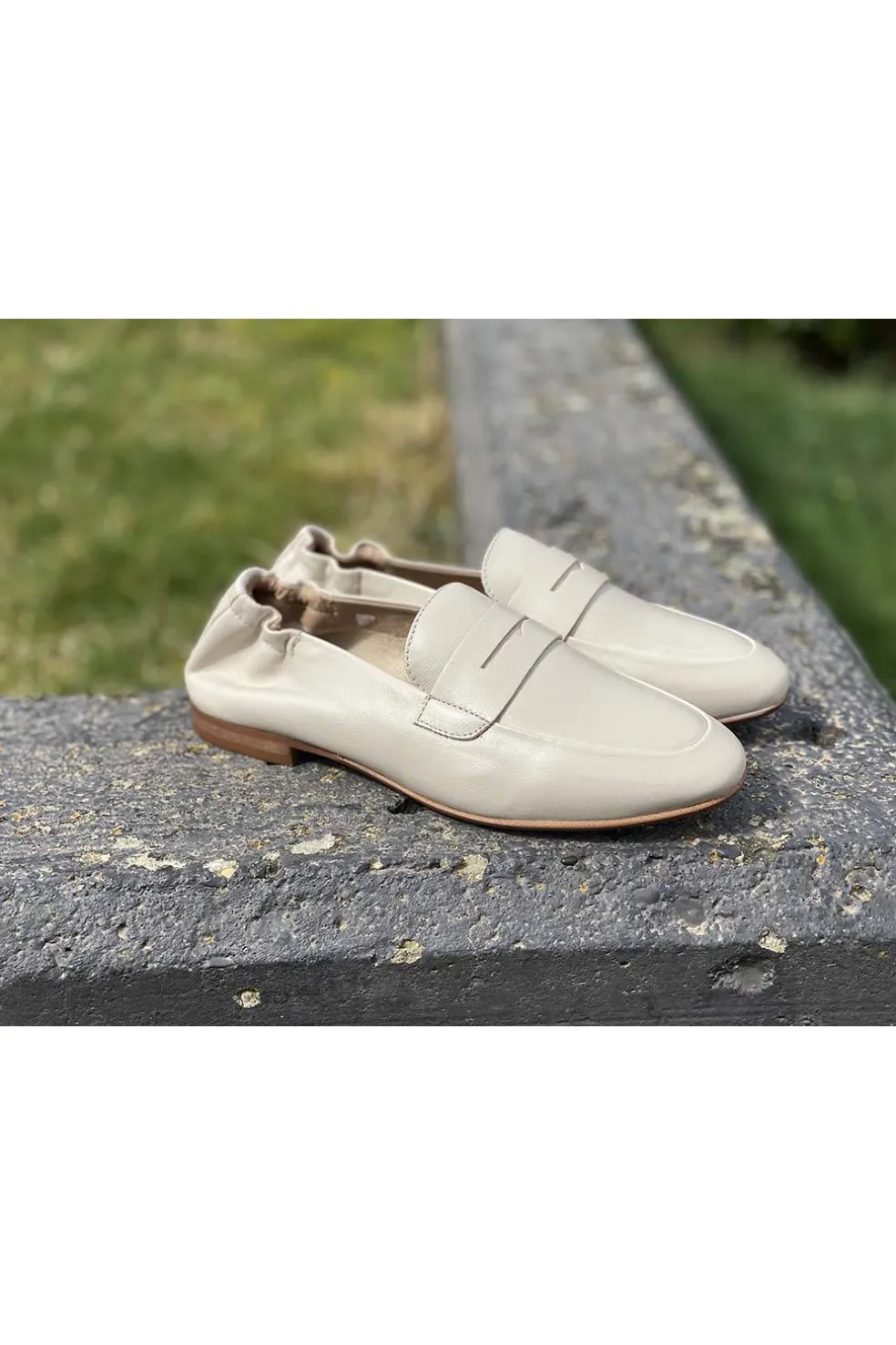 Mocasín con antifaz con elástico en la parte trasera. Tacón de 1.5 cm.
