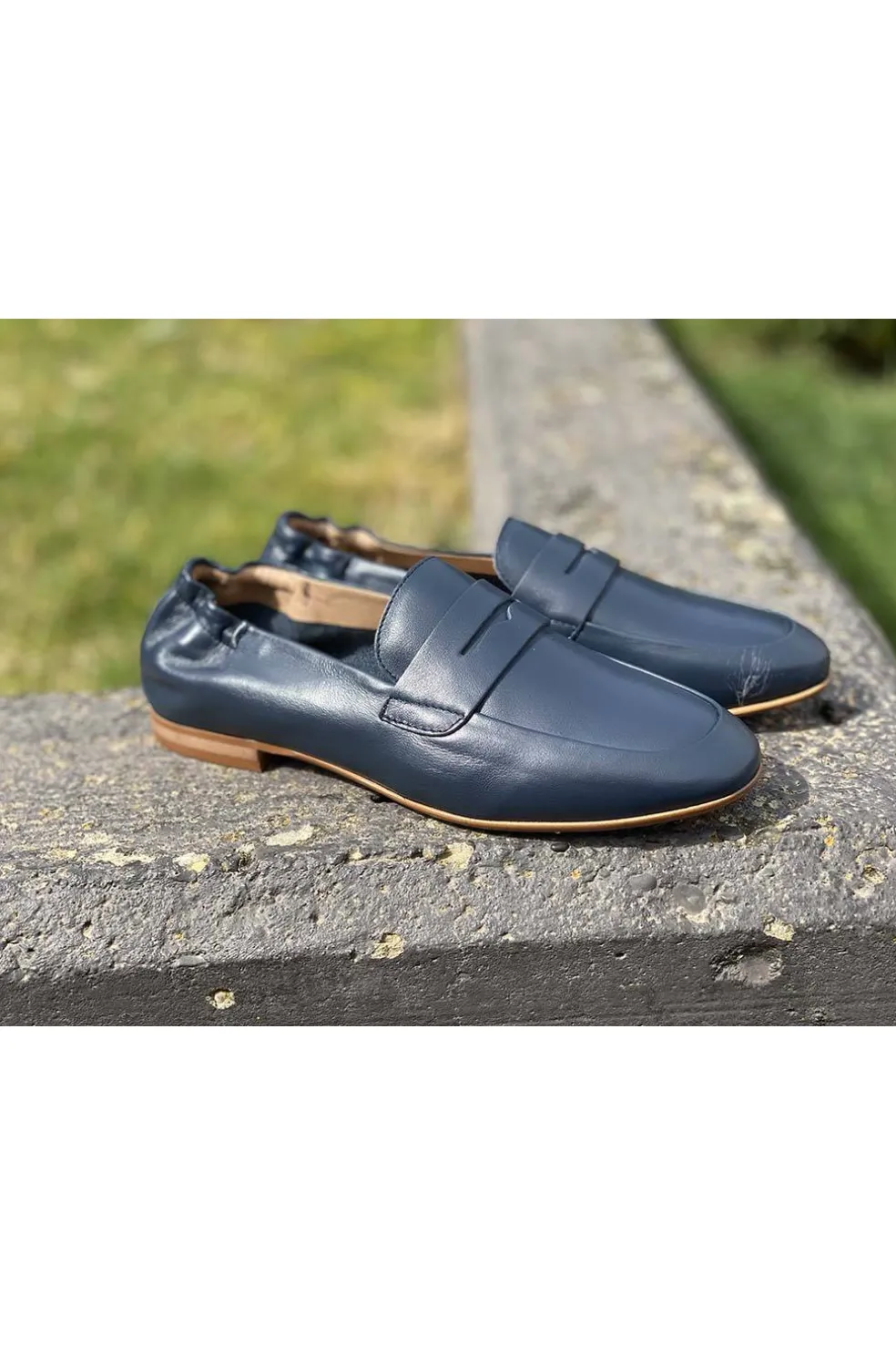 Mocasín con antifaz con elástico en la parte trasera. Tacón de 1.5 cm.