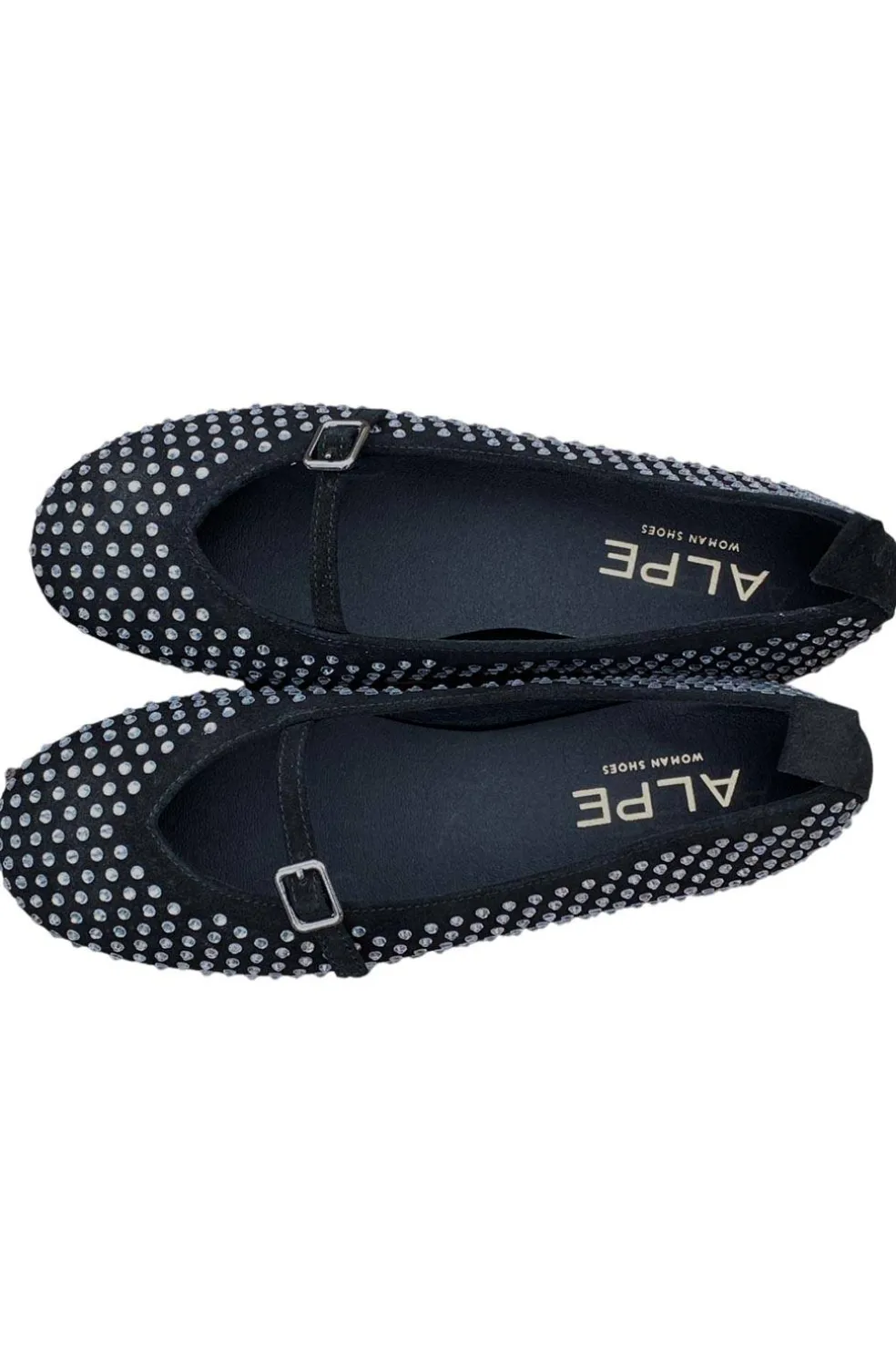 Bailarina para mujer ALPE LISS fabricado en piel (baby silk) de color negro suela antideslizante y puntera redonda, hebilla en color plata. Composición exterior: piel. Composición interior: textil. Plantilla: textil.