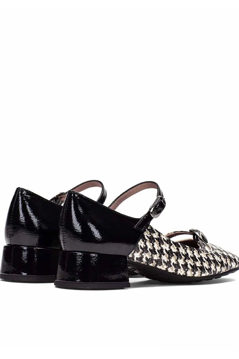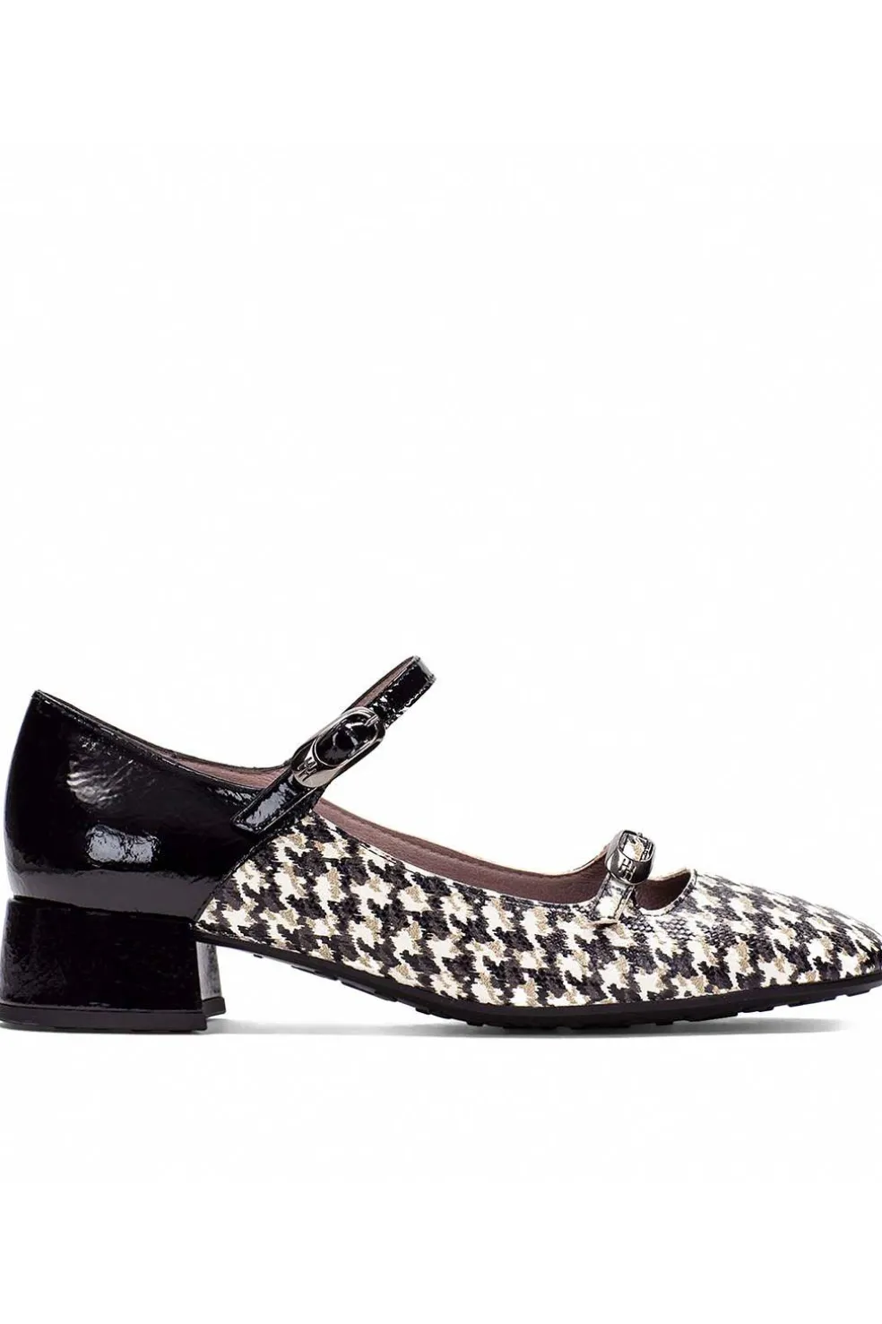 Mary Jane de punta cuadrada con tiras ajustables con hebillas en el empeine. Piso efecto goma con diseño de perfil de tacos y tacón de 3cm. Forro interior de origen no animal, 100% transpirable y termorregulador. Tecnología Triflow: triple almohadillado en la zona de la pisada que absorbe los impactos y aporta un efecto acolchado al caminar.