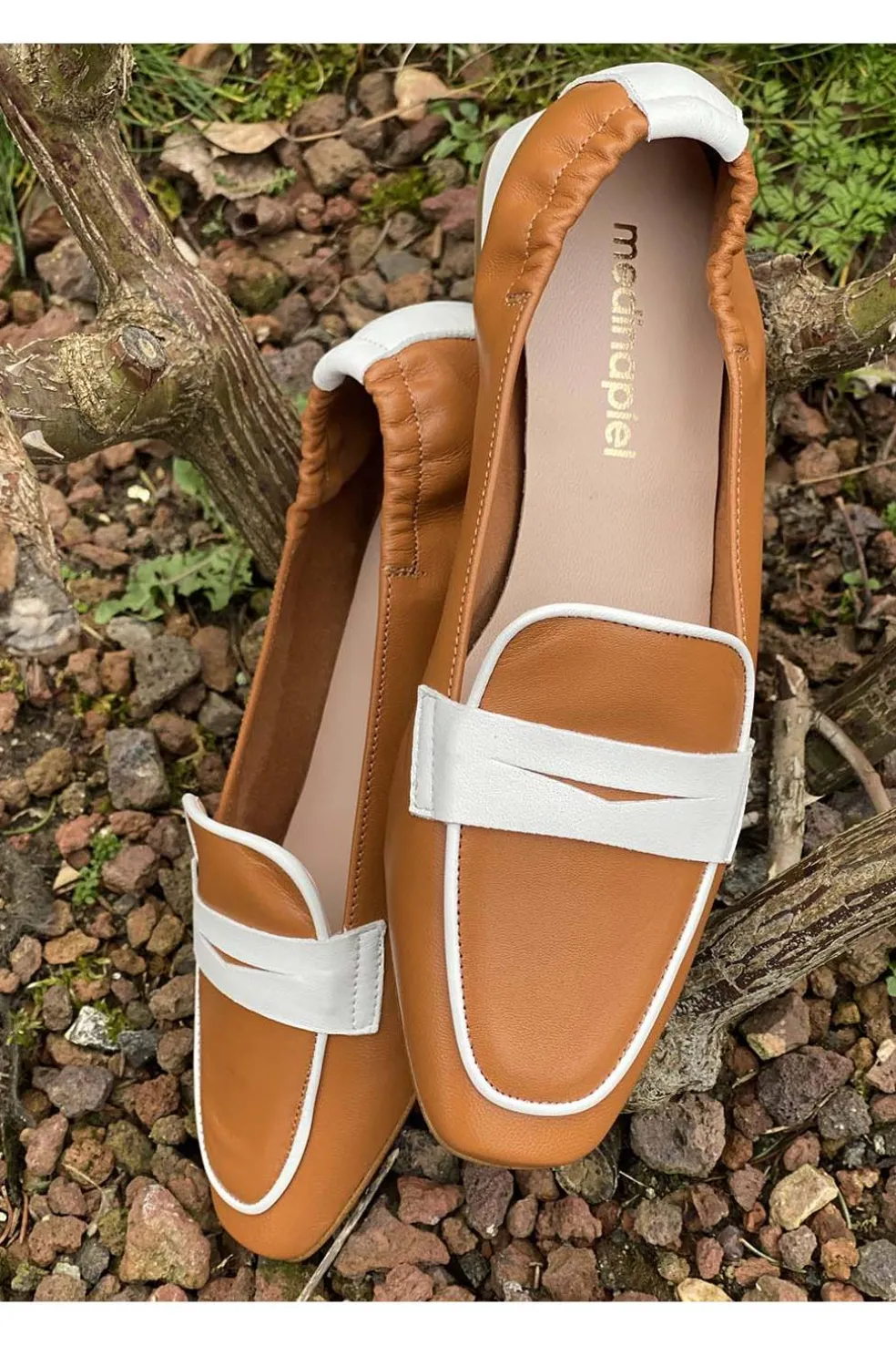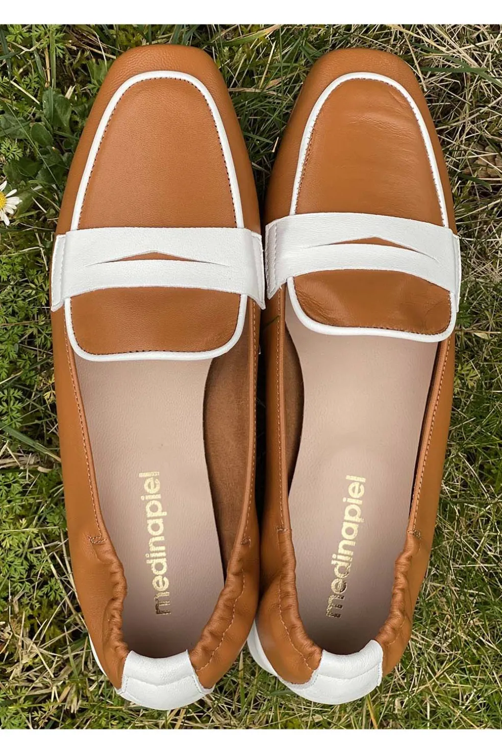 Presentamos el zapato 14046 de piel en color cuero y blanco de Medinapiel, fabricado artesanalmente en España. Este modelo cerrado cuenta con un diseño elegante y moderno, con punta cuadrada y goma en el talón para un ajuste cómodo. Su tacón cuadrado de 2,5 cm ofrece una elevación sutil sin sacrificar la comodidad, mientras que la plantilla de piel asegura una experiencia placentera durante todo el día. Ideal para cualquier ocasión, este zapato combina estilo y confort a la perfección.