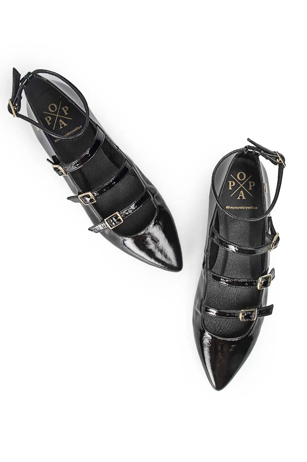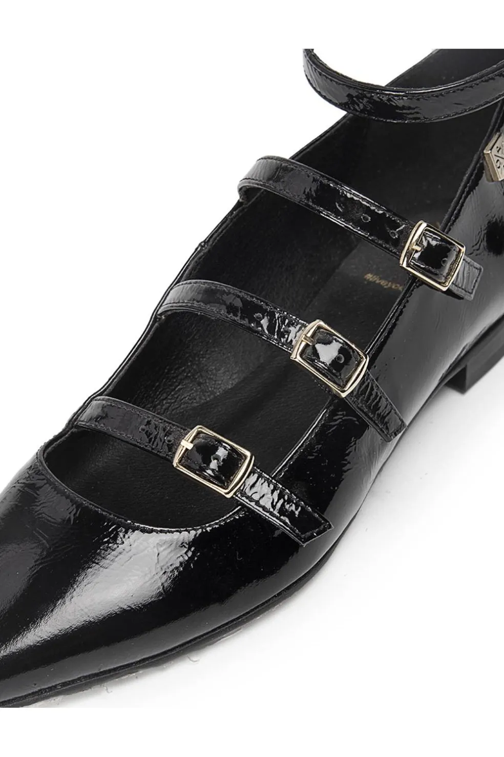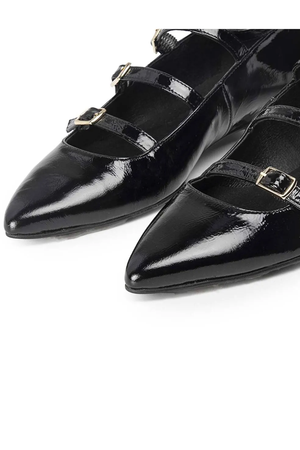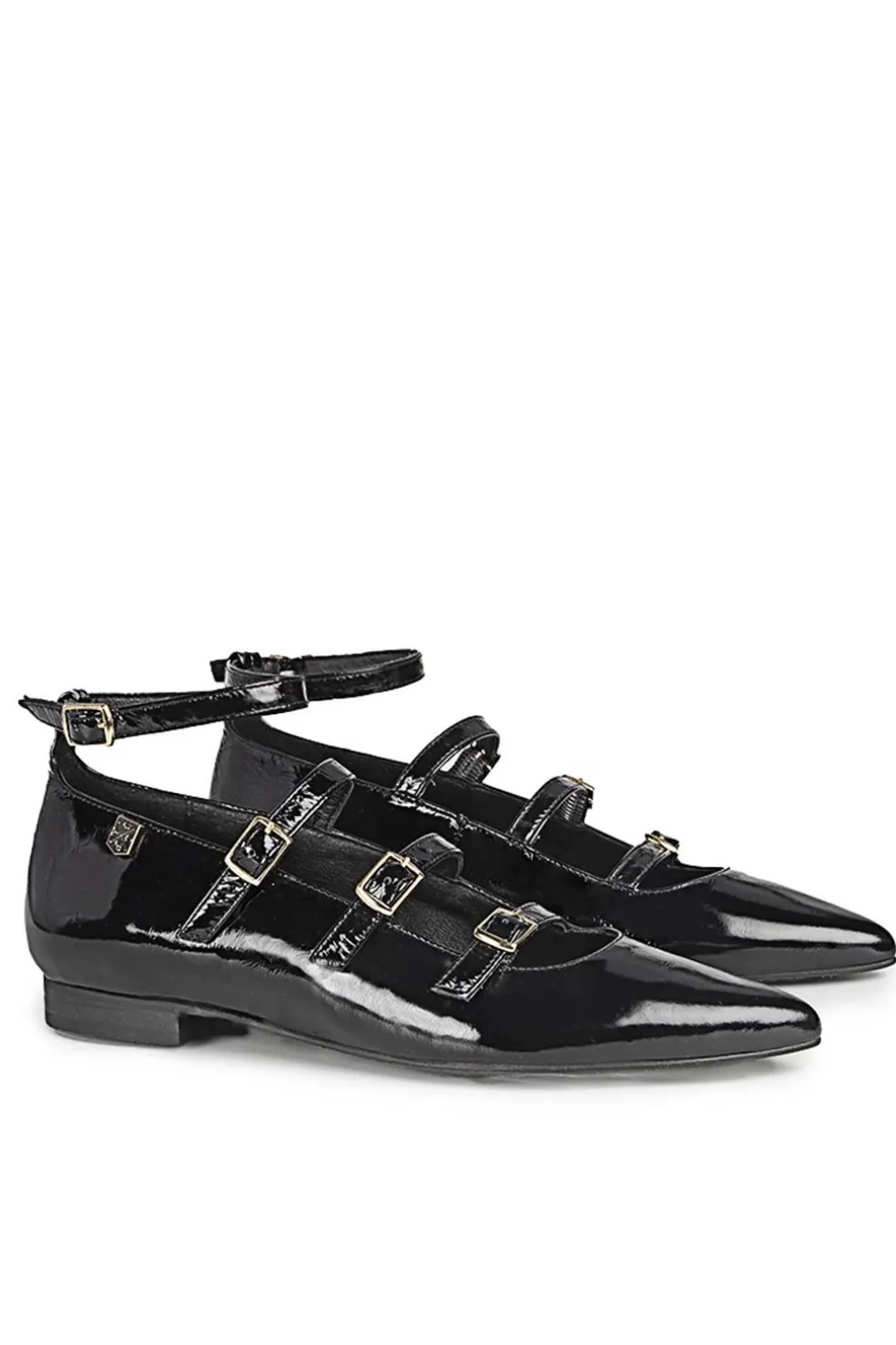 Las icónicas bailarinas Mary Jane con punta fina, conocidas ahora como Ainhoa, tienen tres correas ajustables con hebillas doradas, proporcionando un ajuste perfecto y un toque chic. Este diseño combina elegancia y comodidad, siendo perfectas para cualquier ocasión.