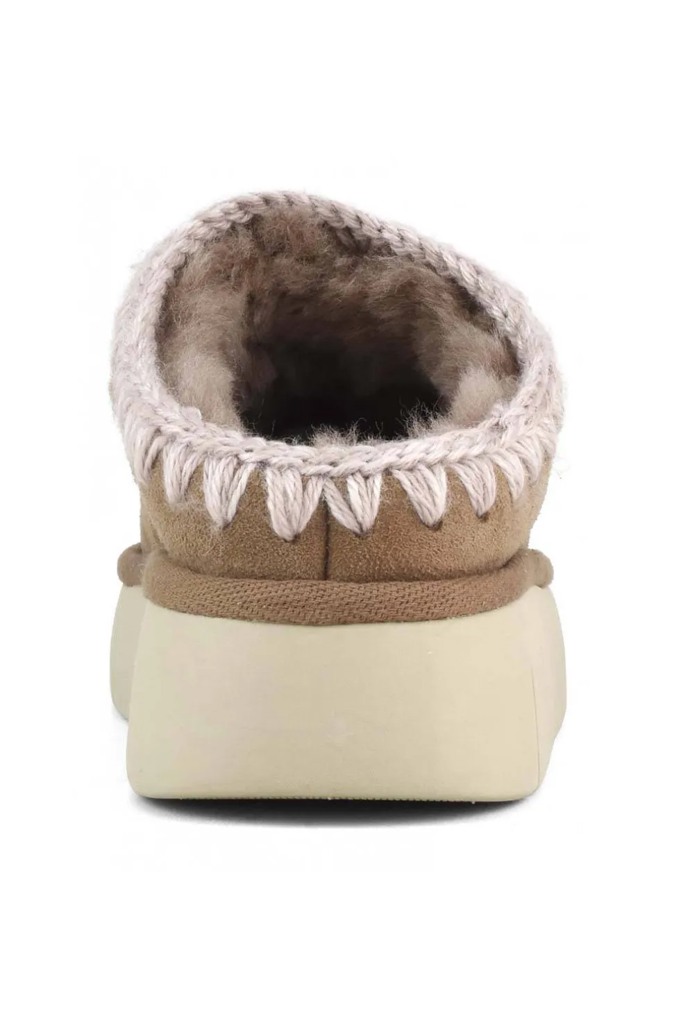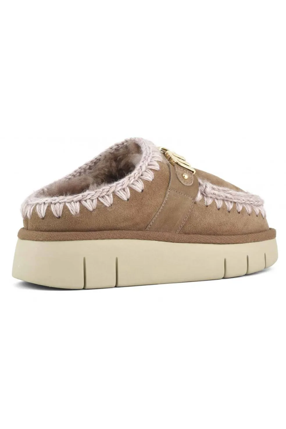 El zueco Bounce con logotipo de metal está elaborado a mano con auténtica piel de oveja de doble cara y costuras de lana tejidas a mano, marca registrada de Mou. La plantilla de cuero acolchada y la suela de goma EVA liviana hacen que este estilo sea increíblemente cómodo de usar.
